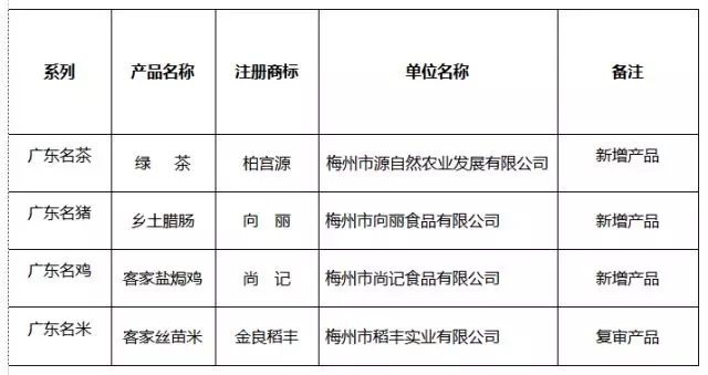 梅江區獲得廣東省“十大名牌”系列農產(chǎn)品名單: